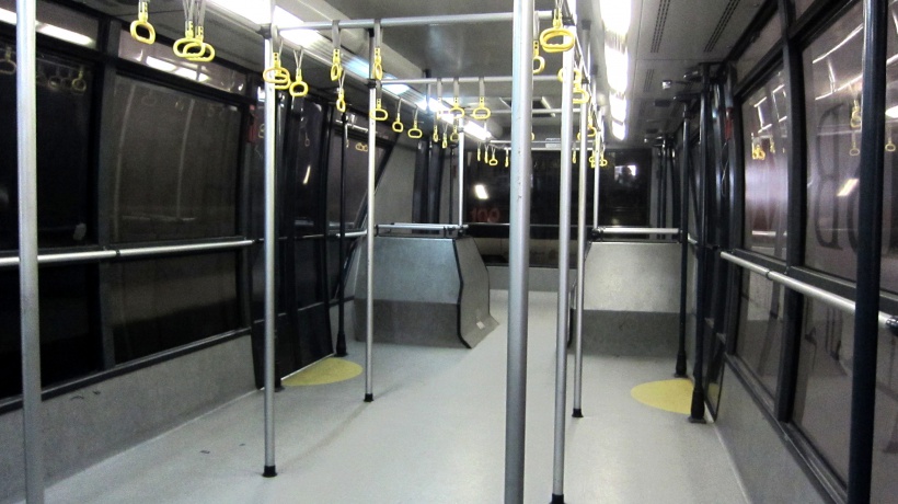 席は全く無し.. と、言いたいところだが、バスの最前部と最後尾にかろうじて用意されている。