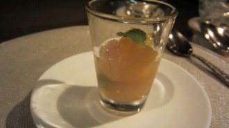 更に、チェリーのお酒でフランベしたさくらんぼとライチのピューレがつまったカプセルをさらにその上に乗せています。